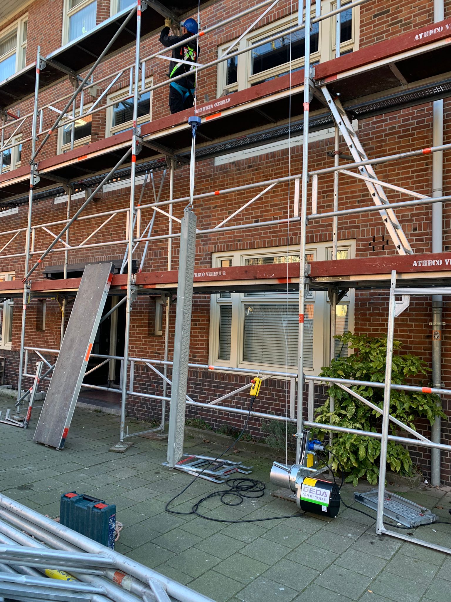 De lift stelt u instaat om veilig en makkelijk uw materialen op de gewenste etage van de steiger te krijgen